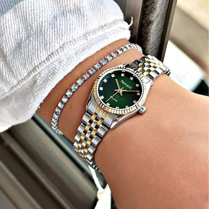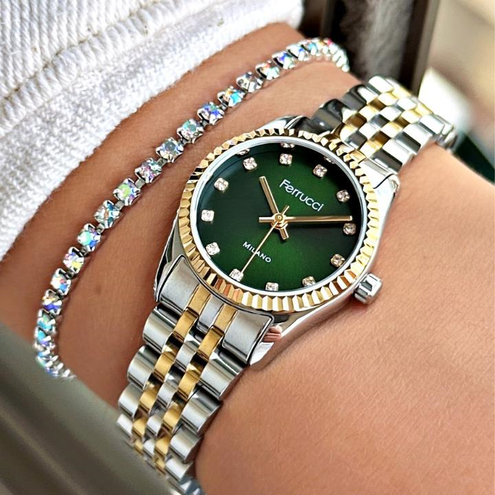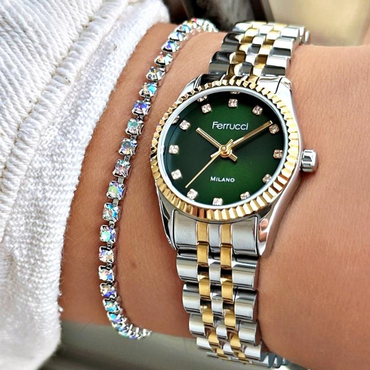 Şıklığı ve zarafeti bileğinizde taşımaya hazır mısınız? Ferrucci'nin bu özel tasarımı, modern erkeğin stilini tamamlamak için üretildi. Klasik detaylarla buluşan yenilikçi tasarımıyla dikkat çeken bu saat, günlük kullanımda da özel günlerde de stilinize kusursuz bir dokunuş katacak. Hem klasik hem spor kombinlere mükemmel uyum sağlar. Şık kutusunda gönderilir, hediye alternatifi olarak da idealdir.