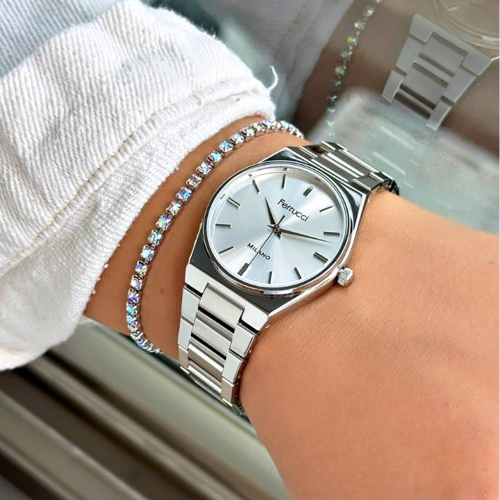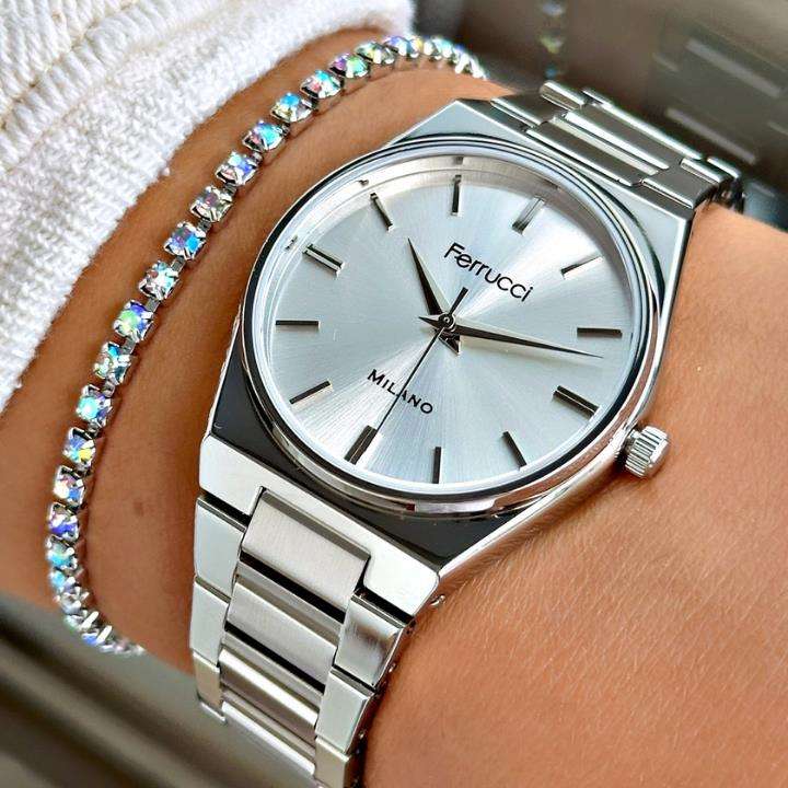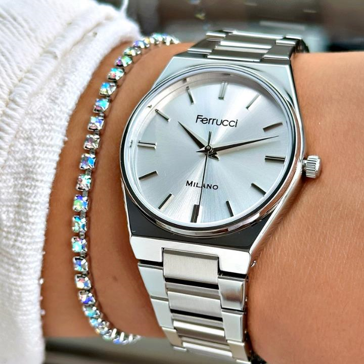 Şıklığı ve zarafeti bileğinizde taşımaya hazır mısınız? Ferrucci'nin bu özel tasarımı, modern erkeğin stilini tamamlamak için üretildi. Klasik detaylarla buluşan yenilikçi tasarımıyla dikkat çeken bu saat, günlük kullanımda da özel günlerde de stilinize kusursuz bir dokunuş katacak. Hem klasik hem spor kombinlere mükemmel uyum sağlar. Şık kutusunda gönderilir, hediye alternatifi olarak da idealdir.