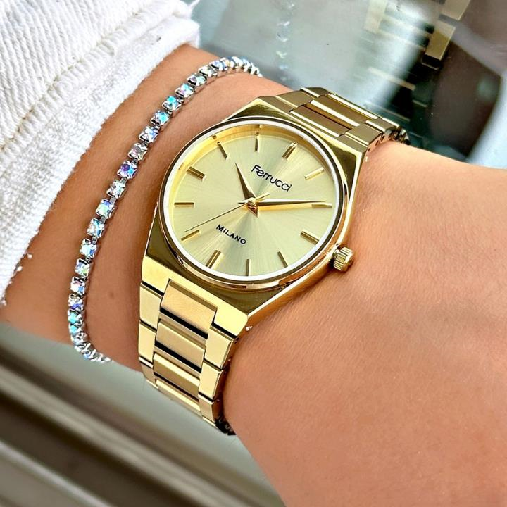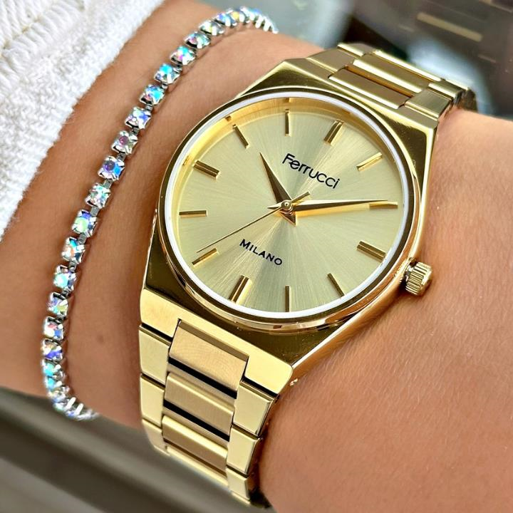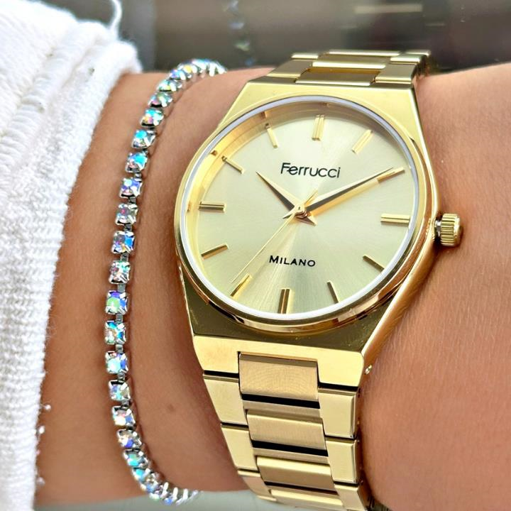Şıklığı ve zarafeti bileğinizde taşımaya hazır mısınız? Ferrucci'nin bu özel tasarımı, modern erkeğin stilini tamamlamak için üretildi. Klasik detaylarla buluşan yenilikçi tasarımıyla dikkat çeken bu saat, günlük kullanımda da özel günlerde de stilinize kusursuz bir dokunuş katacak. Hem klasik hem spor kombinlere mükemmel uyum sağlar. Şık kutusunda gönderilir, hediye alternatifi olarak da idealdir.