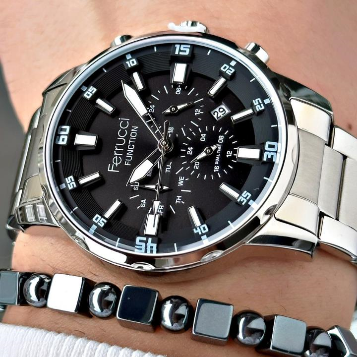 Şıklığı ve zarafeti bileğinizde taşımaya hazır mısınız? Ferrucci'nin bu özel tasarımı, modern erkeğin stilini tamamlamak için üretildi. Klasik detaylarla buluşan yenilikçi tasarımıyla dikkat çeken bu saat, günlük kullanımda da özel günlerde de stilinize kusursuz bir dokunuş katacak. Hem klasik hem spor kombinlere mükemmel uyum sağlar. Şık kutusunda gönderilir, hediye alternatifi olarak da idealdir.