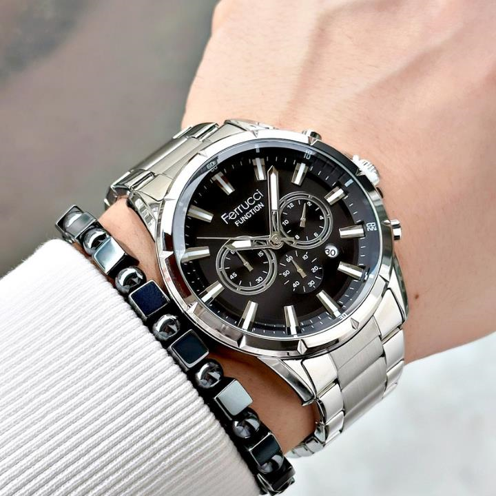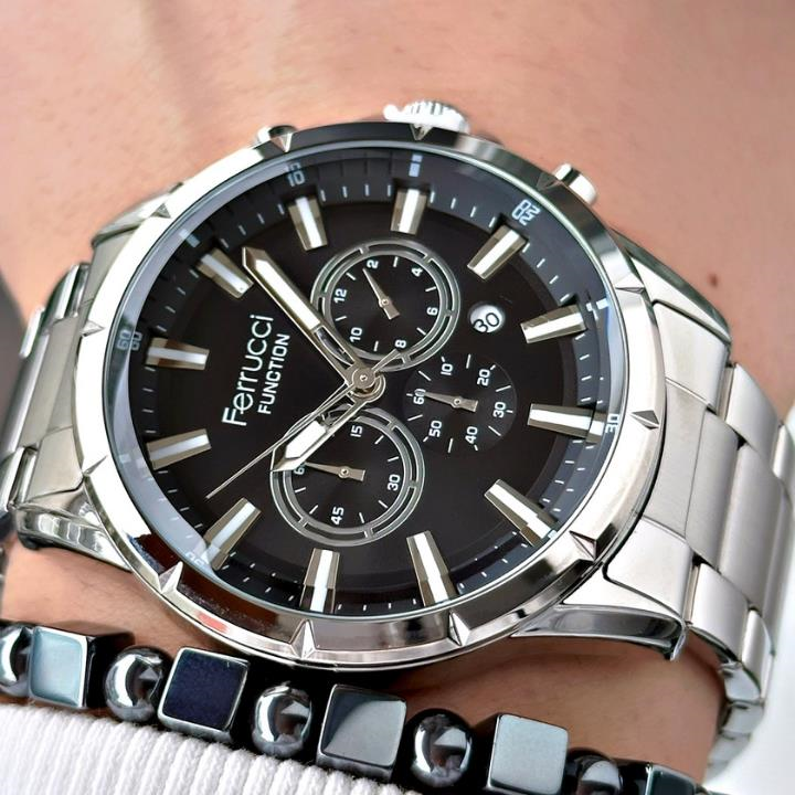 Şıklığı ve zarafeti bileğinizde taşımaya hazır mısınız? Ferrucci'nin bu özel tasarımı, modern erkeğin stilini tamamlamak için üretildi. Klasik detaylarla buluşan yenilikçi tasarımıyla dikkat çeken bu saat, günlük kullanımda da özel günlerde de stilinize kusursuz bir dokunuş katacak. Hem klasik hem spor kombinlere mükemmel uyum sağlar. Şık kutusunda gönderilir, hediye alternatifi olarak da idealdir.